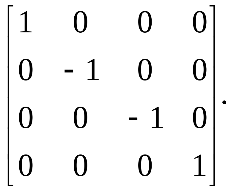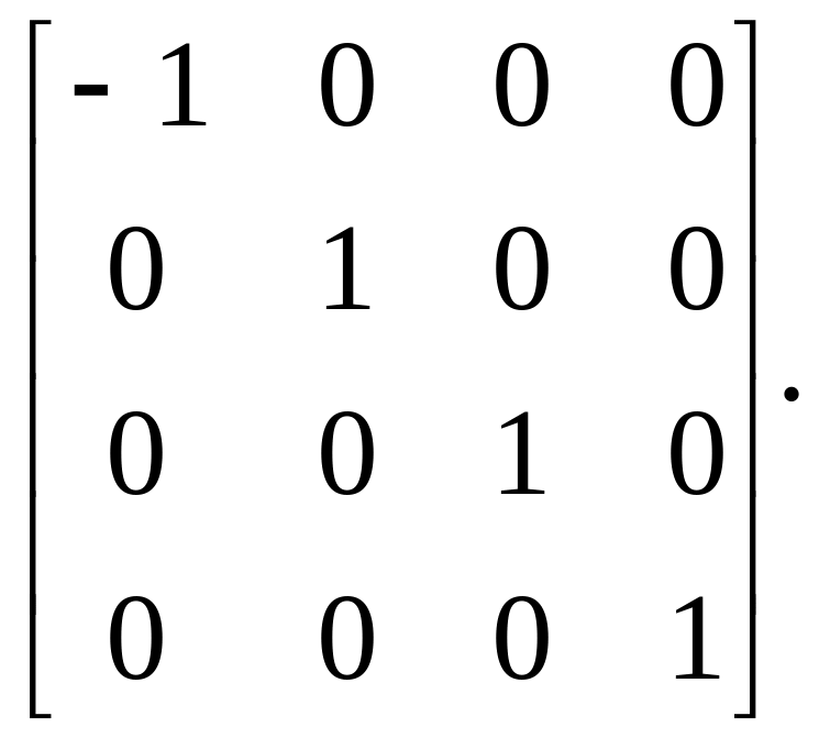 положный: Р = (x, y, z, 1) → Р* = ( - x, y, z, 1). Прямая и обратная матрицы преобразования будут следующими:
