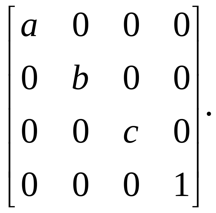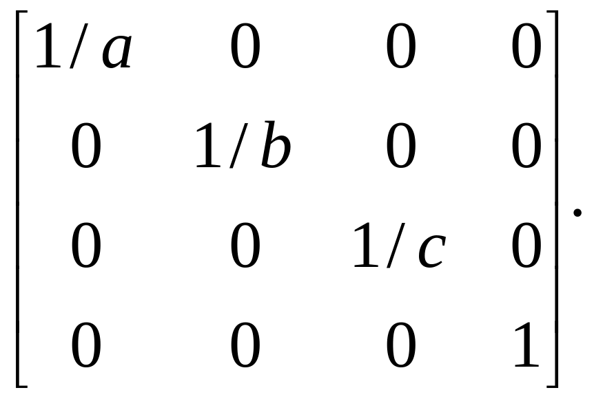 Обратное преобразование соответствует изменению масштаба с коэффициентами (1/a,1/b,1/c):
