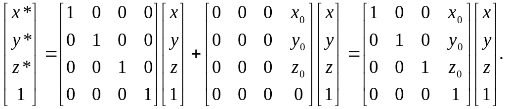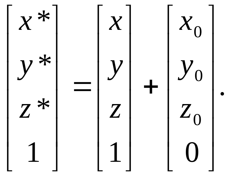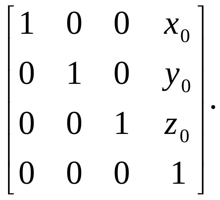 При этом матрица сдвига на вектор (x0, y0, z0) имеет вид: