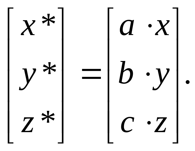 Координаты всех точек Р(x, y, z) умножаются на фик-сированные положительные числа a, b,c (коэффициенты из-