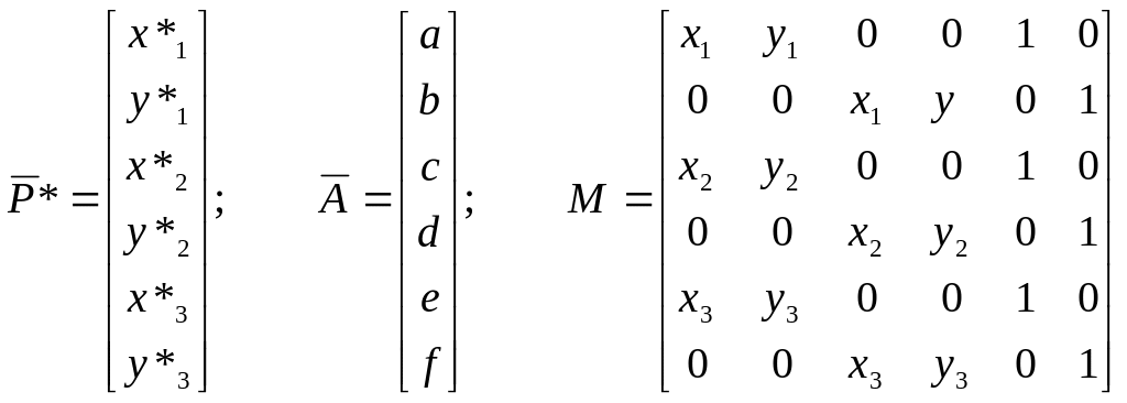 На плоскости точку представляют с помощью двух ее координат (x, y), поэтому, для однозначного задания коэф-фициентов преобразования (a,b,c,d,e,f) необходимо указать три пары точек (Р1→Р1*), (Р2→Р2*), (Р3 → Р3*), которые должны переводиться одна в другую с помощью линейного преобразования. В этом случае число уравнений