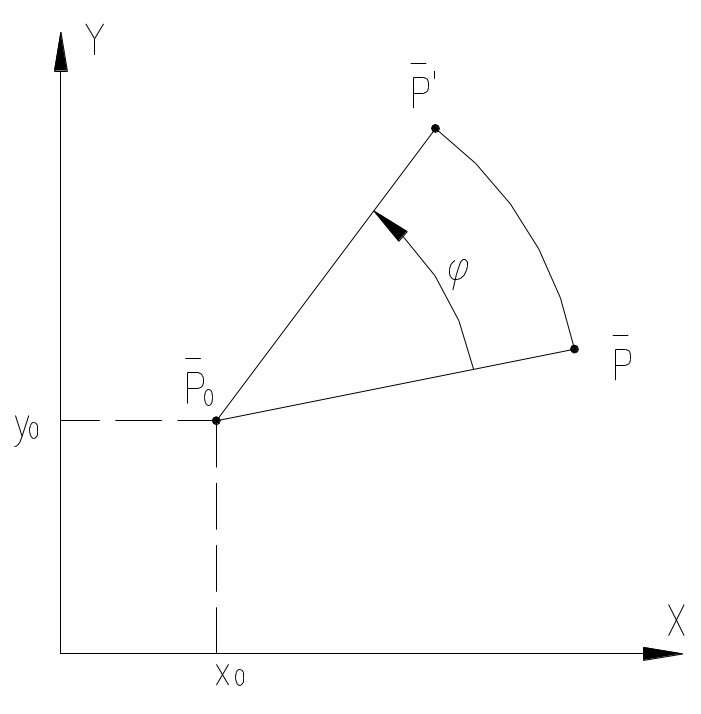 1) сдвиг всех точек плоскости на вектор (-x0,-y0) (при этом Р0 переместится в начало координат);