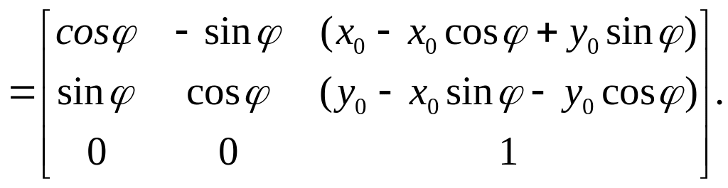 МТ = Мсд(x0, y0) ∙Мпz(φ)∙ Мсд (-x0, -y0) =