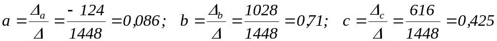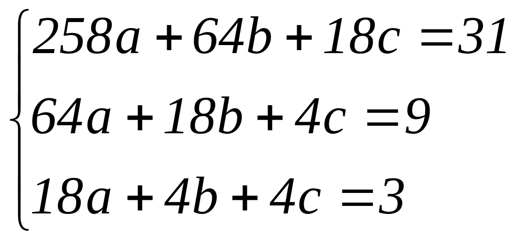 Методом Крамера обчислюють параметри параболи: