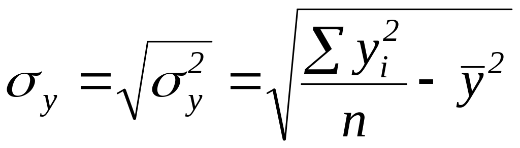 Обчислимо середні квадратичні відхилення для х і у: