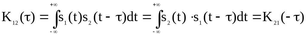 т.е. одно и тоже взаимное положение сигналов s1(t) и s2(t) будет достигнуто как при сдвиге s2(t) "вправо" по оси времени, так и при сдвиге s1(t) "влево";