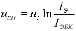 Напряжение на эмиттерном переходе можно вычислить с помощью (3.21). Пренебрегая малыми тепловыми токами, получаем: