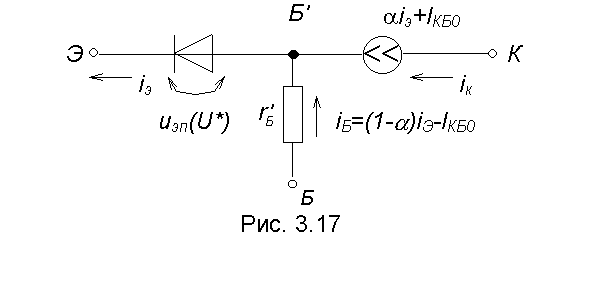 Эквивалентная схема для включения с ОЭ приведена на рис.3.19.