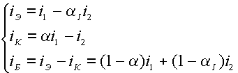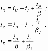 Токи во внешних цепях транзистора рассчитываются по формулам:
