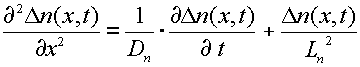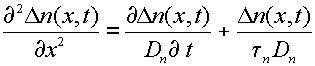 Полученное уравнение называют уравнением непрерывности для электронов. Оно учитывает диффузионное движение носителей заряда и их рекомбинацию. Интегрируя это уравнение при известных начальных и граничных условиях можно определить D n(x,t).
