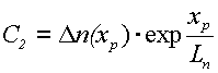 Таким образом, распределение избыточной концентрации вдоль оси x характеризуется уравнением: