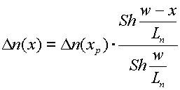 В полупроводниковых приборах часто встречаются такие случаи, когда инжекция осуществляется в тонкую область толщиной w< Ln . В этом случае решение уравнения (1.34) имеет вид: