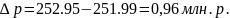Pфакт - Рплан = 253-252 = 1 млн.р.