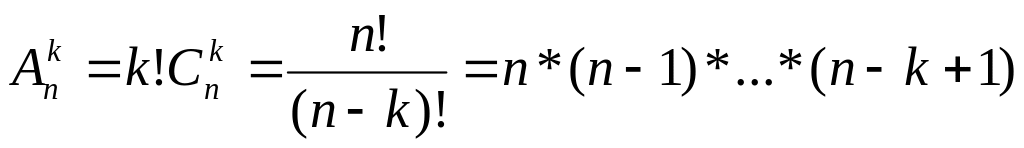 Количество упорядоченных k-элементных подмножеств n-элементного множества, все k элементов которого различны, равно