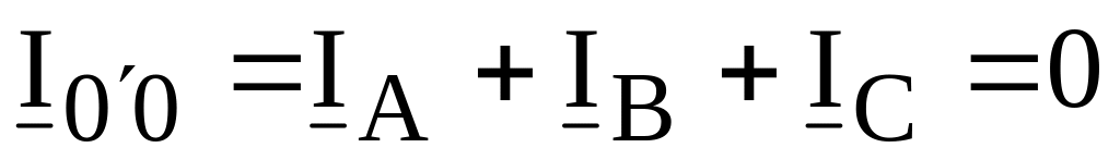 Ток в нулевом проводе равен сумме комплексов действующих значений фазных токов