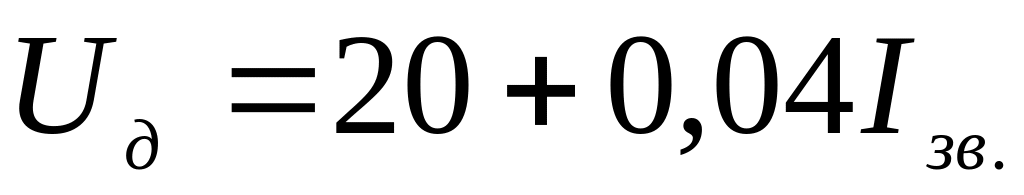 Напруга зварювальної дуги визначається на основі сили зварювального струму до 600 А за формулою, В,