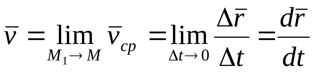 Вектор скорости движущейся точки равен первой производной по времени от её радиус-вектора и направлен по касательной к траектории движущейся точки.