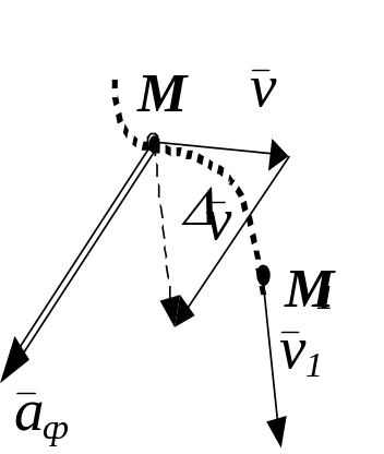 Ускорение точки в положении M равно пределу, к которому стремится среднее ускорение на участке MM1, когда размеры этого участка стягиваются в точку: