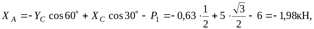 Р2х=Рsin 30o, P2y=Pcos 30o.