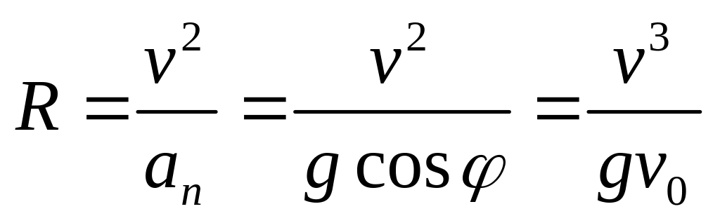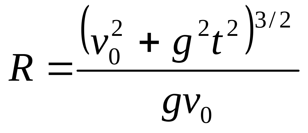 2) радиус кривизны траектории тела через