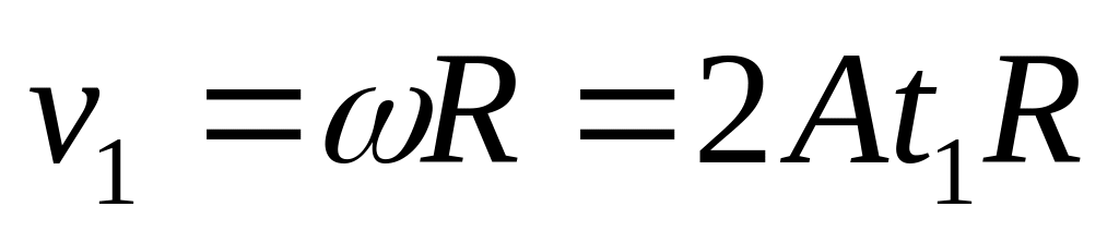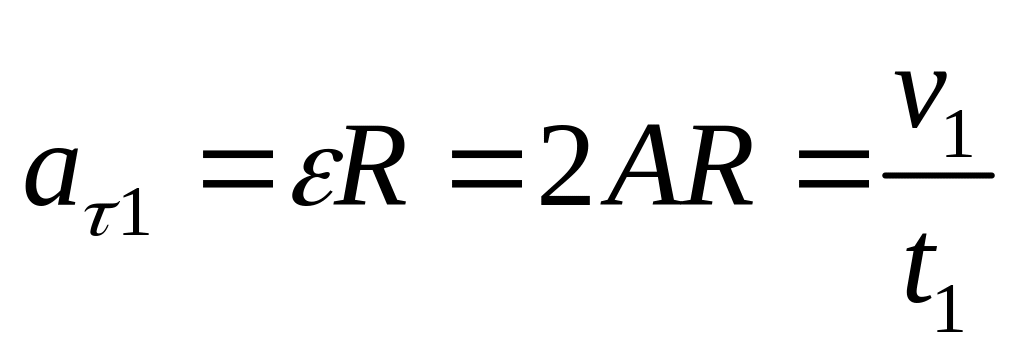 Далее учитывая, что нормальное и тангенциальное ускорения точки на ободе колеса в момент времени равны: