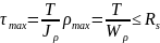 T-макс крутящ мом;Rs-расчетн сопр материала на срез; Wp-геометр хар-ка попереч сеч-я,наз полярн мом-том сопр-я