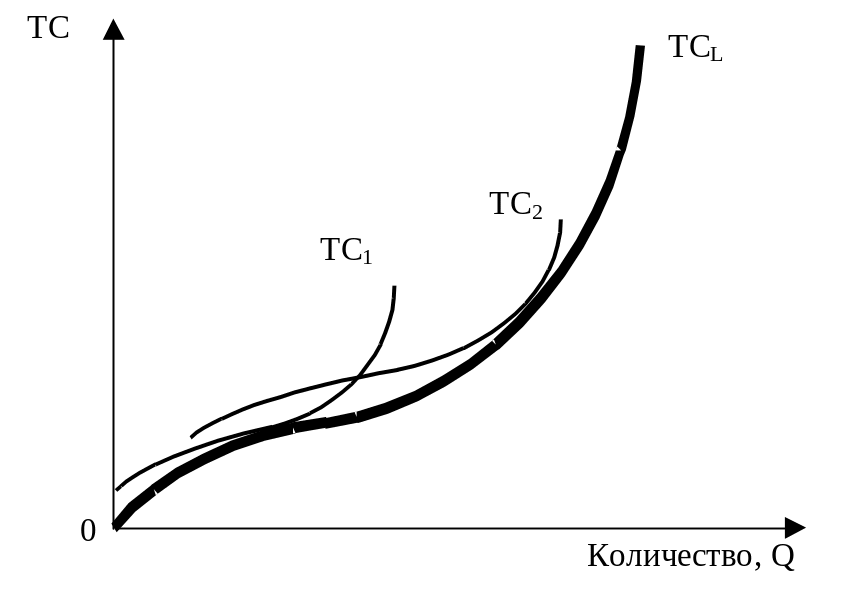 Рис. VI- . Общие совокупные издержки в долгосрочном периоде