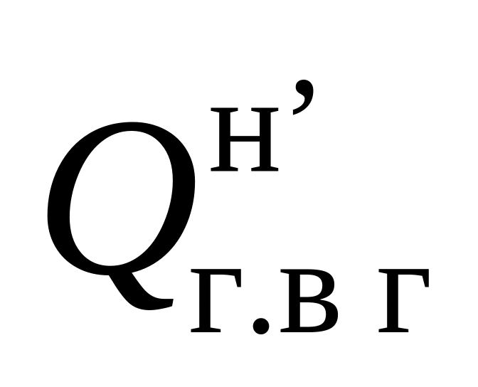 где tг.в – температура воды на подающей трубе системы горячего водоснабжения, оС; tх.в – температура воды в системе холодного водоснабжения, оС; tх.в л – температура холодной воды летом (при отсутствии данных tх.в л=15 оС); tх.в з – температура холодной воды зимой (при отсутствии данных tх.в з=5 оС); nо – продолжительность отопительного периода, ч; сг.в – теплоемкости воды системы горячего водоснабжения, кДж/м3оС; Gг.в – расход воды в системе горячего водоснабжения, м3/ч.
