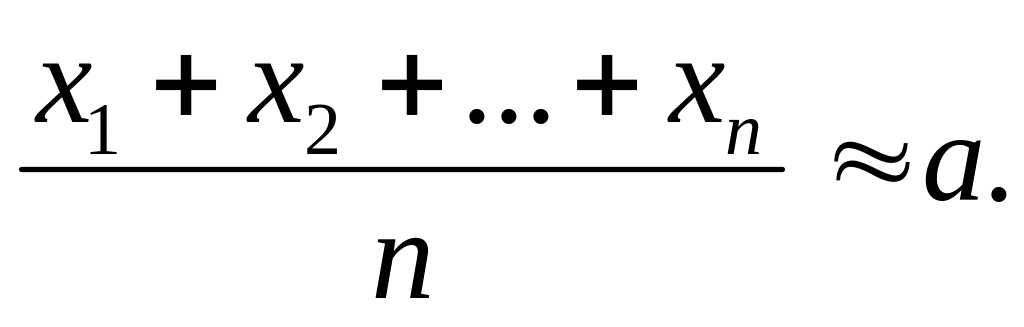 На основании закона больших чисел Чебышева (см. §5, п.2) можно утверждать, что с практической достоверностью для достаточно большого числа п измерений средняя арифметическая результатов измерений отличается от истинного значения физической постоянной сколь угодно мало, т. е. с вероятностью, сколь угодно близкой к единице, имеет место приближенное равенство