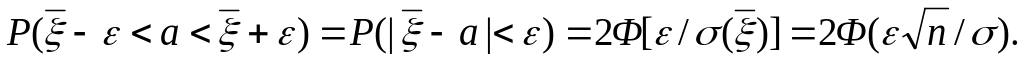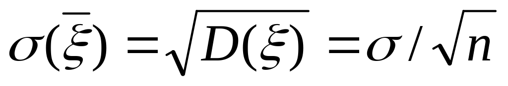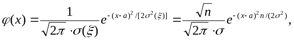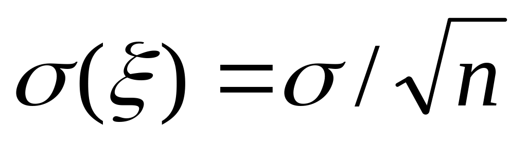 Оценим точность этого приближенного равенства. Для этого, прежде всего, заметим, что в силу основного закона ошибок (см §6, п.2 раздела теории вероятностей) каждый возможный результат измерения ξi есть случайная величина, подчиняющаяся нормальному закону распределения вероятностей с одним и тем же математическим ожиданием, равным истинному значению а измеряемой величины: M(ξi) = a (i = l, 2, … n). Далее будем предполагать, что все измерения проводятся с одинаковой степенью точности (равноточные измерения). Поэтому дисперсии всех случайных величин должны быть одинаковыми, т. е. D(ξi) = σ2.
