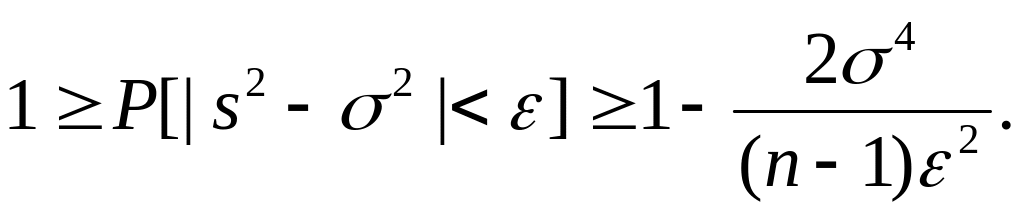 где ε > 0. Подставляя значения М(s2) и D(s2), получим