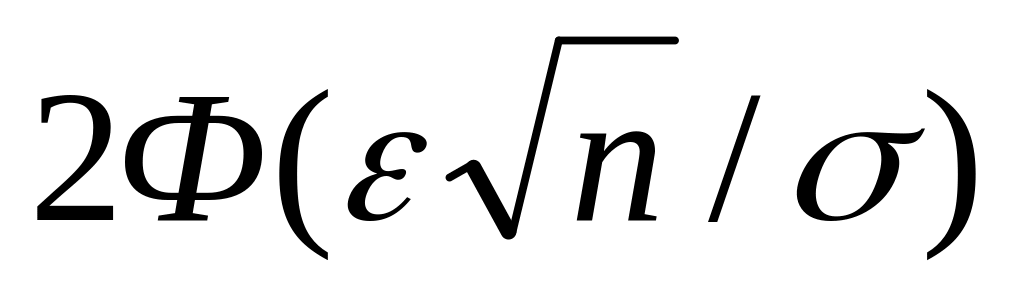 Следовательно, вероятность того, что при п измерениях мы получим такую совокупность значений x1, x2, … xn, что при любом ε > 0 интервал ] –ε, +ε[ будет содержать а, на основании формулы (33) определяется соотношением