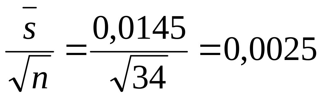 В данном случае доверительный интервал ] –ε, +ε[ = ]4,5055 – 0,0075; 4,5055 + 0,0075[ = =]4,498; 4,513[.