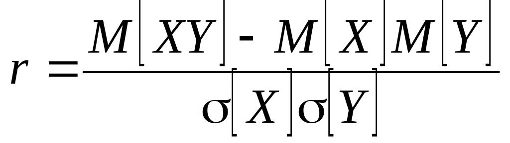 где M[XY] – математическое ожидание произведения с. в. X и Y.