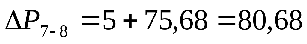 Потери давления в местных сопротивлениях на участке 7–8: