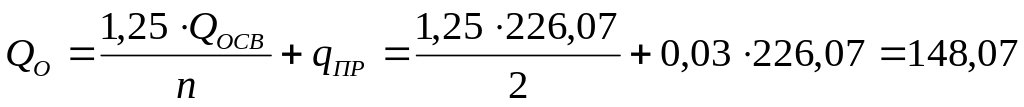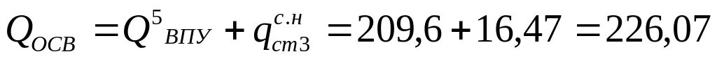 где n − количество установленных осветлителей; qпр−часовой расход воды на продувку осветлителей, равный 0,03∙QОСВ.