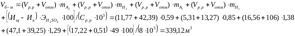 4.Вместимость баков-мерников 92%-ой серной кислоты с плотностью 1,824 т/м3 определяется из расчета суточного расхода с запасом 25%: