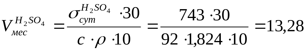 5.Вместимость цистерн хранения 92%-ой H2SO4 из расчета тридцатисуточного запаса: