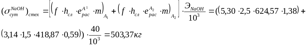 10. Стехиометрический суточный расход 100%-ого NaOH на регенерацию катионита в фильтрах А1 и А2: