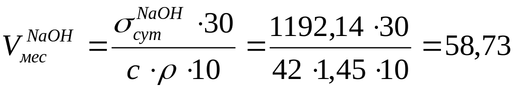 8.Вместимость цистерн хранения 42%-ой NaOH из расчета тридцатисуточного запаса: