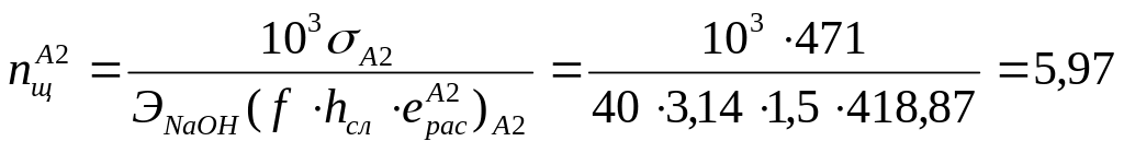 17. Для уточнения количества щелочи, расходуемой при последовательном пропуске через фильтр А2 и А1, находим избыток щелочи при регенерации А2: