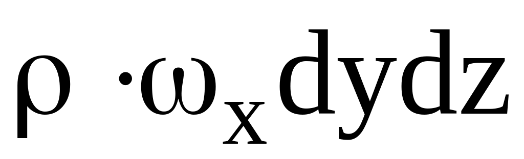 Разность массовых расходов жидкости через две перпендикулярные оси Х грани или скорость накопления массы в элементе (dx, dy, dz) будет равна