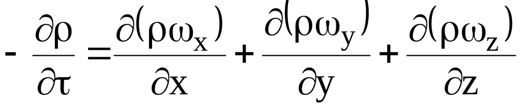 При условии постоянной плотности ( ) уравнение неразрывности потока получаем путём сложения скоростей накопления массы и приравнивая к нулю эту сумму массовых расходов через все шесть граней.