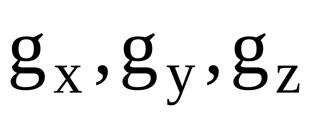 Если на движущийся поток жидкости действует сила гравитации, а нет электрических и магнитных сил, то массовые силы вдоль осей X, Y, Z будут равны: