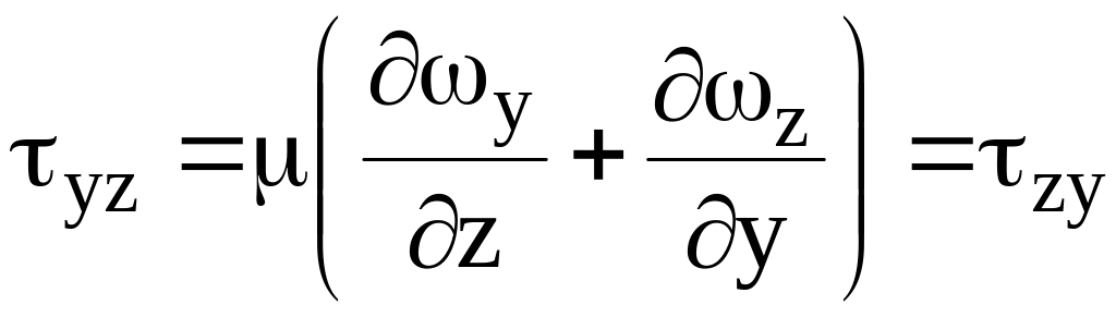 Стокс предположил, что в движущихся жидкостях и газах напряжения пропорциональны не деформациям, как в твёрдых упругих телах (закон Гука), а скорости деформации (закон трения Стокса). Схема деформации элементов со сдвигом в плоскости X, Y показана на рис. 11.3.