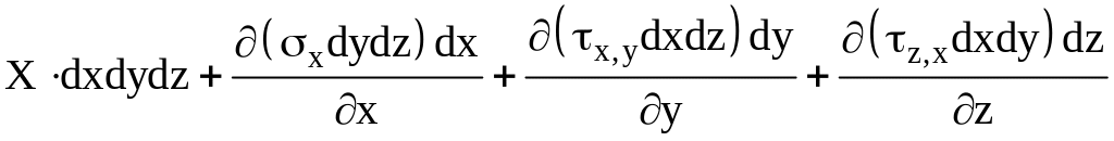 Сумму сил в направлении X, Y, Z, приложенных к элементу объёма можно представить в виде