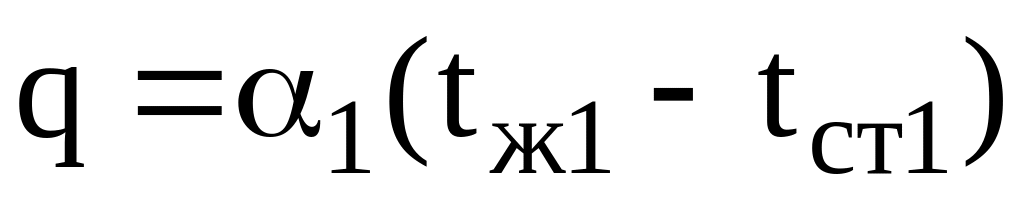 Согласно закону Ньютона-Рихмана плотность теплового потока между горячей средой и поверхностью стенки: