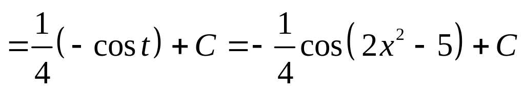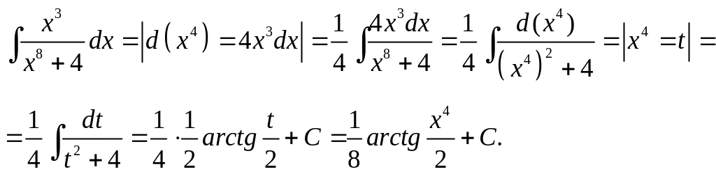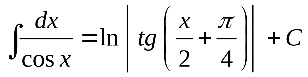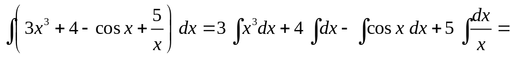 Здесь мы использовали свойства 4 (постоянный множитель можно выносить за знак интеграла) и 5 (интеграл от суммы двух функций равен сумме интегралов от этих функций), а также формулы 1, 2, 3, 7.