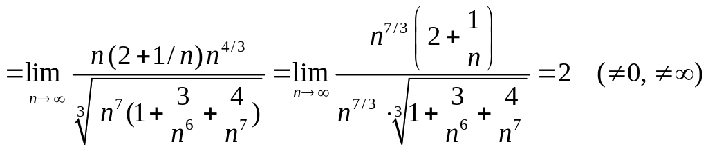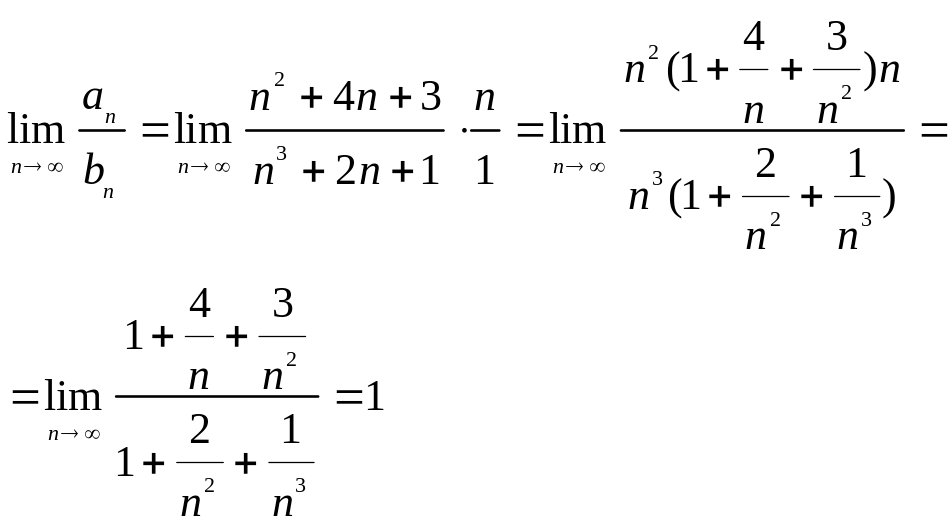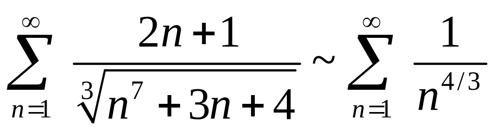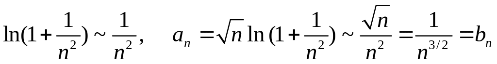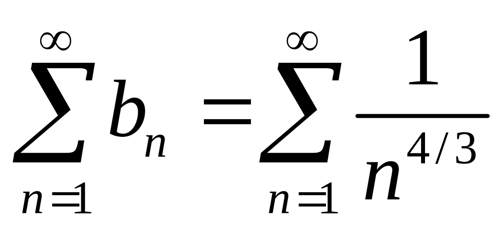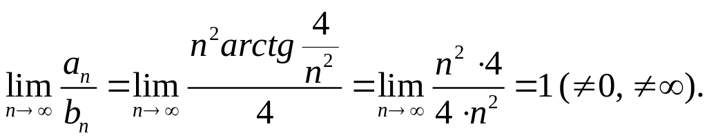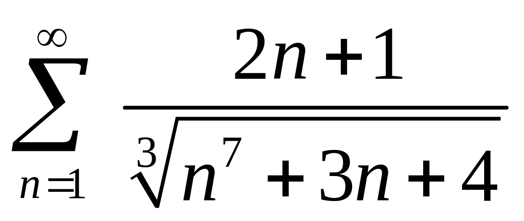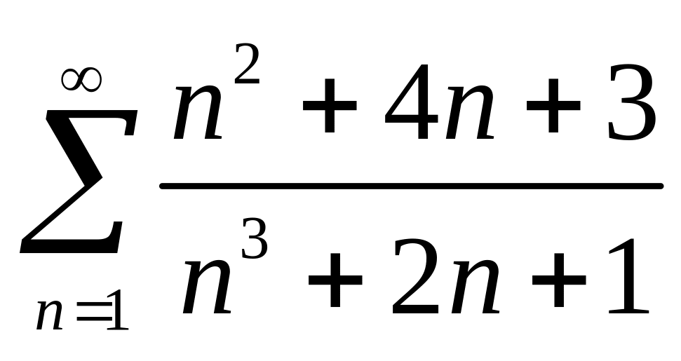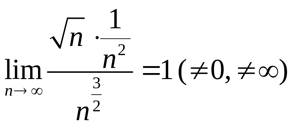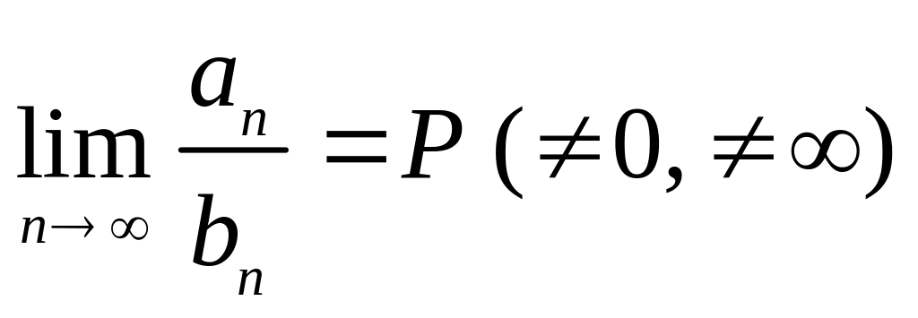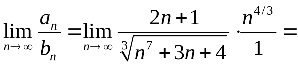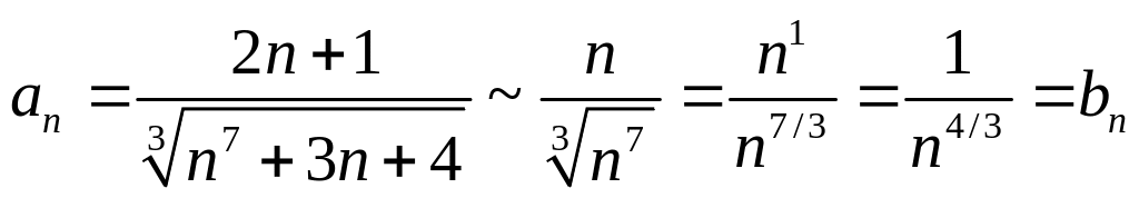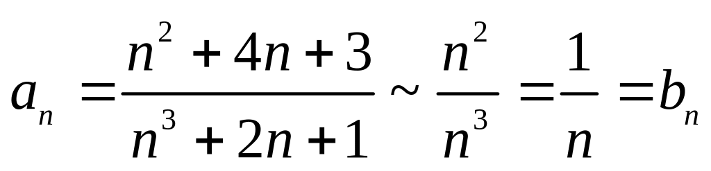 Замечание. Предельный признак сравнения применяется обычно, если an является частным двух многочленов. Чтобы подобрать ряд , оставляют только старшие степени переменной и в числителе и знаменателе.