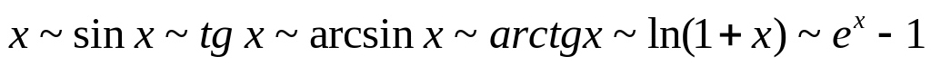 Замечание. Из следствий замечательных пределов получают цепочку эквивалентных бесконечно малых, которая часто используется при применении предельного признака: